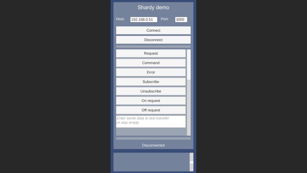 Клиент Shardy поддерживает сборки под iOS, Android и WebGL. Он предоставляет RPC-фреймворк с простым и удобным API для взаимодействия с Shardy-сервисами.